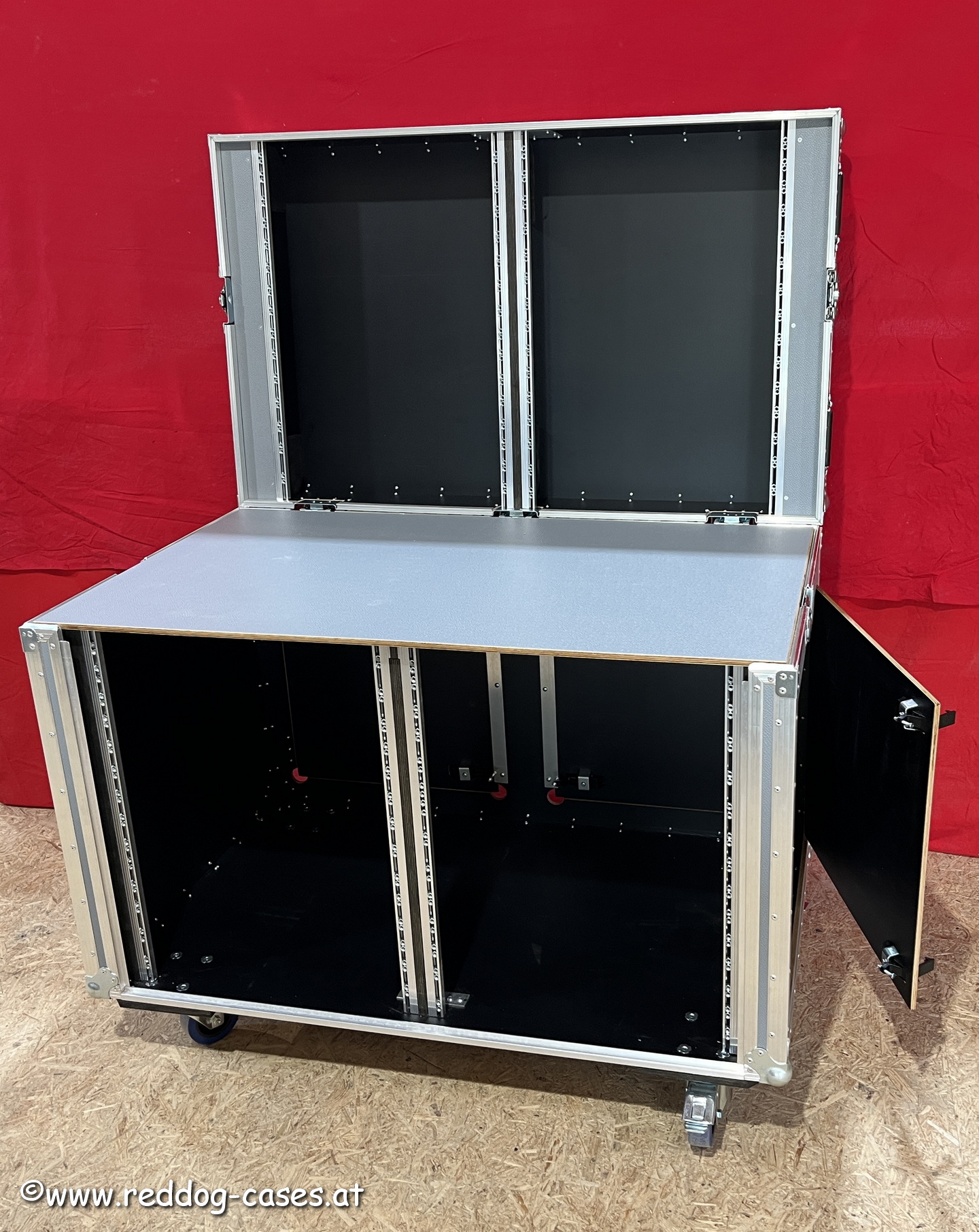 Mobiler Doppel-19"-Arbeitsplatz mit diversen Serviceƶffnungen